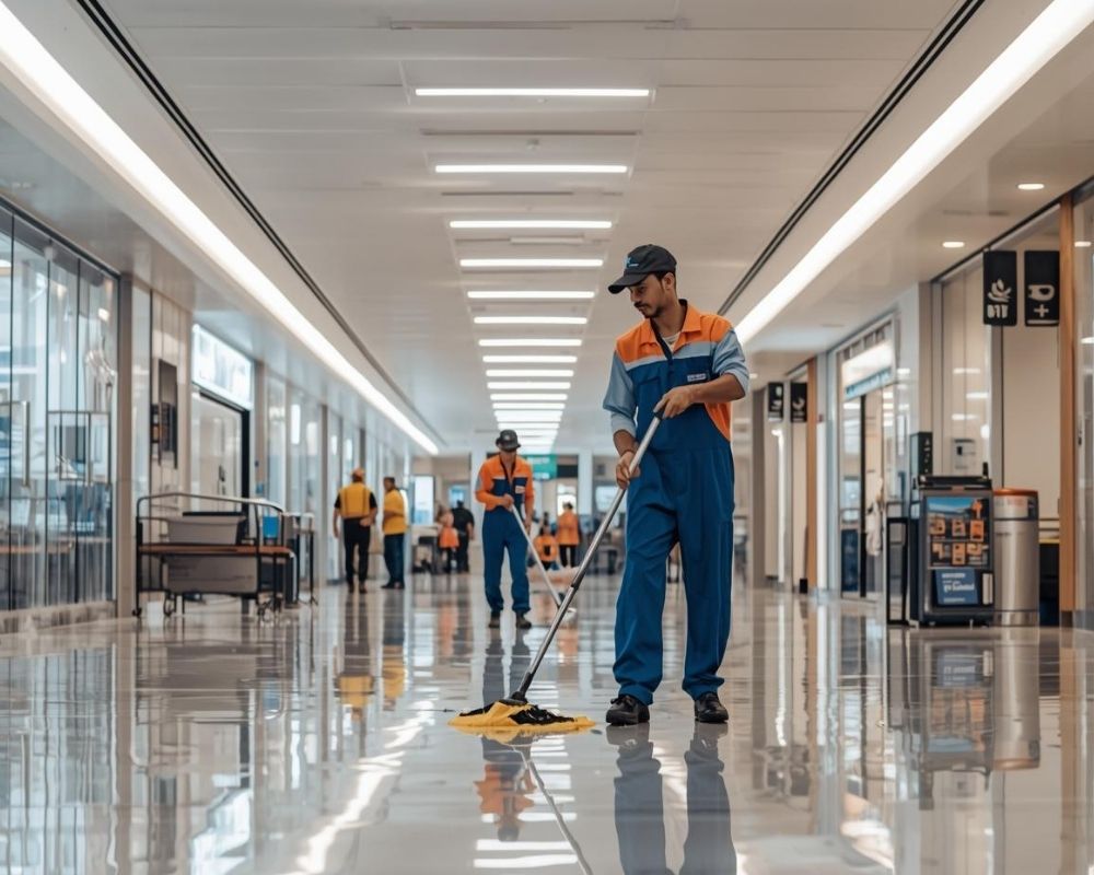 üzletterek, folyosók, mosdók takarítása